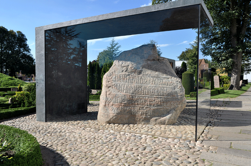 Monticules, pierres runiques et église de Jelling