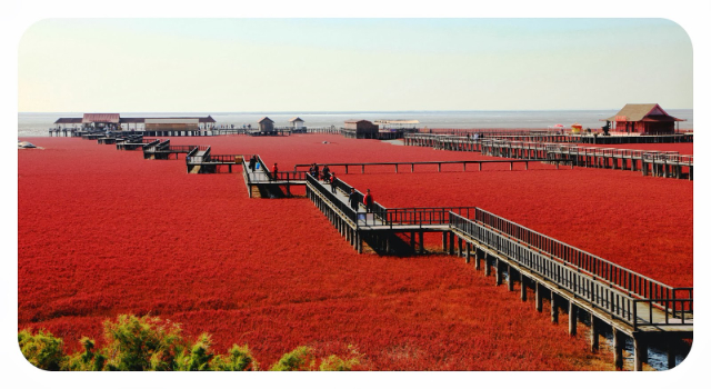 Plage rouge dans le comté de Dawa, Panjin, Chine