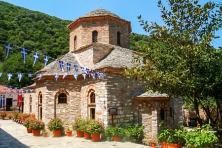Монастырь Панагиас Евангелистрия и греческий флаг