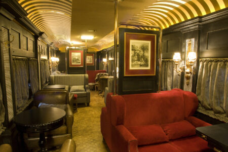 Serra Verde Express .Trem de Luxo是库里提巴和莫雷特斯之间的古老豪华地方列车。它提供了威胁性的山地峡谷、热带绿色低地和广阔的蓝色大西洋的崇高景观。