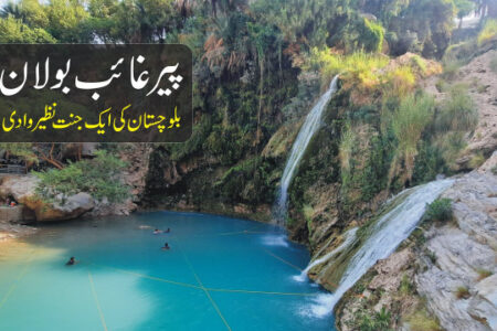 在博朗峡谷(Bolan Gorge)的源头,坐落着皮尔盖布瀑布(Pir Ghaib Waterfalls),这里的地貌变得干旱而美丽。这些瀑布距离巴基斯坦俾路支省的奎达(Quetta)70 公里(43 英里),是一处迷人的自然度假胜地,水流从岩石山腰倾泻而下,流经多条溪流,汇入棕榈树掩映的池塘。