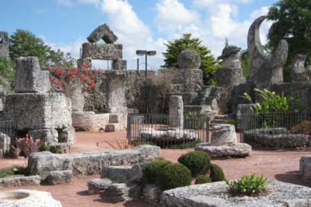 佛罗里达州的珊瑚城堡是一个用原始工具手工建造的雕塑公园。 这些雕塑由拉脱维亚爱德华Leedskalnin创作,他花了28年的时间用珊瑚石雕刻它们。 雕塑,1100吨的珊瑚,代表一个纪念碑谁离开了他们的婚礼前一天的女人。 Leedskalnin还在他的雕塑周围建了一堵墙,每天晚上都在自己的作品上工作。