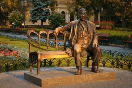 列昂尼德Utiosov的纪念碑是最受欢迎的地方之一Odessa.It 安装在2000年的周年纪念庆祝城市的一天(竖立纪念碑,以城市的一天的传统保持在整个十年)。 这位着名的流行歌手是这个城市的土生土长和真诚的崇拜者。