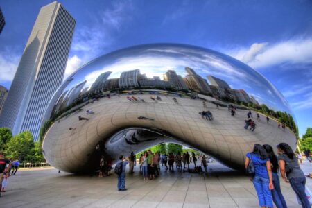 这座110吨重的椭圆形雕塑由一系列高度抛光的不锈钢板锻造而成,反映了芝加哥着名的天际线和上面的云层。 一个12英尺高的拱门为雕塑下方的凹室提供了”大门”,邀请游客触摸其镜面般的表面,… 閱讀其餘內容