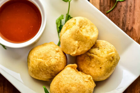 山药瓦是印度马哈拉施特拉邦发明的一种流行的街头素食。这是一种美味的小吃,它的制作方法是将土豆泥与草药混合,蘸上鹰嘴豆面团,然后进行烘烤。外表金黄酥脆,内里神圣美味。