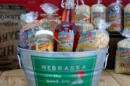 内布拉斯加州是全国领先的爆米花生产商,约占美国供应量的四分之一。 据传说,爆米花球是在内布拉斯加州一天不稳定的天气中发明的:首先是大雨,从高粱草中流出的糖浆流入玉米田,然后是极端的热量导致玉米爆炸,最后一场龙卷风将糖衣爆米花卷成团。 气候变化使得这个故事看起来实际上是合理的