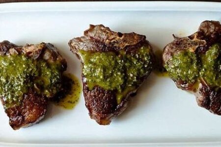 薄荷羊肉是用无骨羊腿准备的,并用白葡萄酒和柠檬汁浸泡,然后放在带有薄荷叶的平底锅中煮熟。