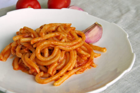 Pici all’aglione是一种传统的农民菜肴,起源于Val di Chiana,结合了托斯卡纳美食的两大元素。