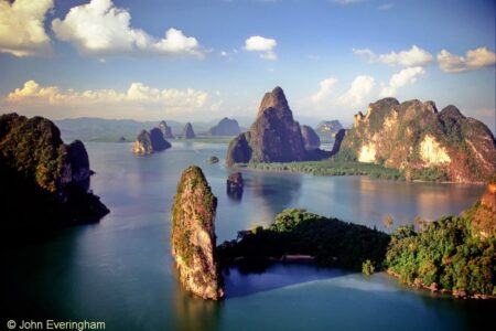 攀牙湾是一个400平方公里的海湾,位于普吉岛和泰国南部马来半岛大陆之间的马六甲海峡。