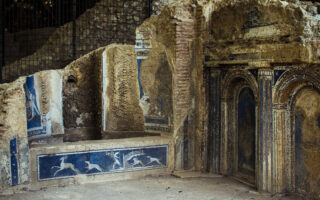 最近在庞贝发现的Termopolium中出土了各种物品,包括九个双耳瓶、一个青铜酒壶、两个烧瓶和一个用于盛放食物的普通陶罐。地板是用 cocciopesto(一种由陶土碎片组成的防水涂层)铺设的,有些地方还镶嵌着多色大理石碎片。
